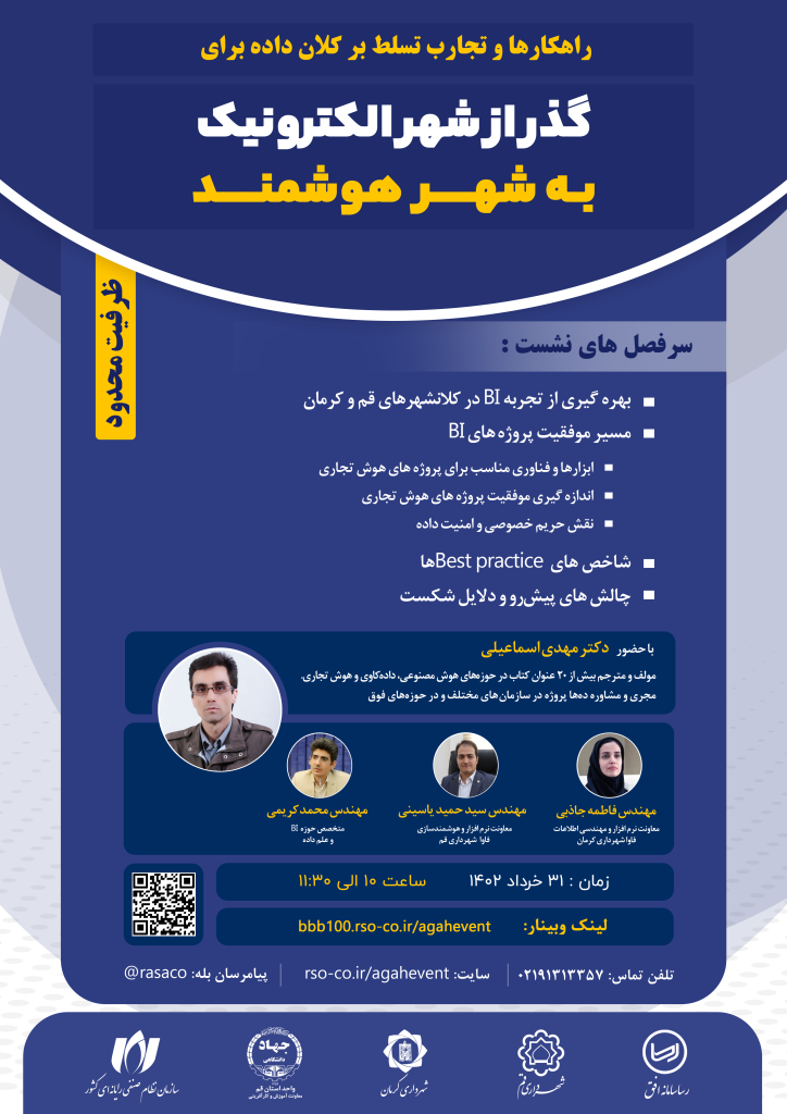 در این رویداد، به بررسی راهکارها و تجارب موفق در تسلط بر کلان داده برای گذر از شهر الکترونیک به شهر هوشمند میپردازیم. با تمرکز بر این دادههای کلان و استفاده هوشمندانه از آنها، شهرها قادر خواهند بود تا عملکرد خدمات شهری را بهبود داده و به مشکلات روزمره شهروندان پاسخ دهند.